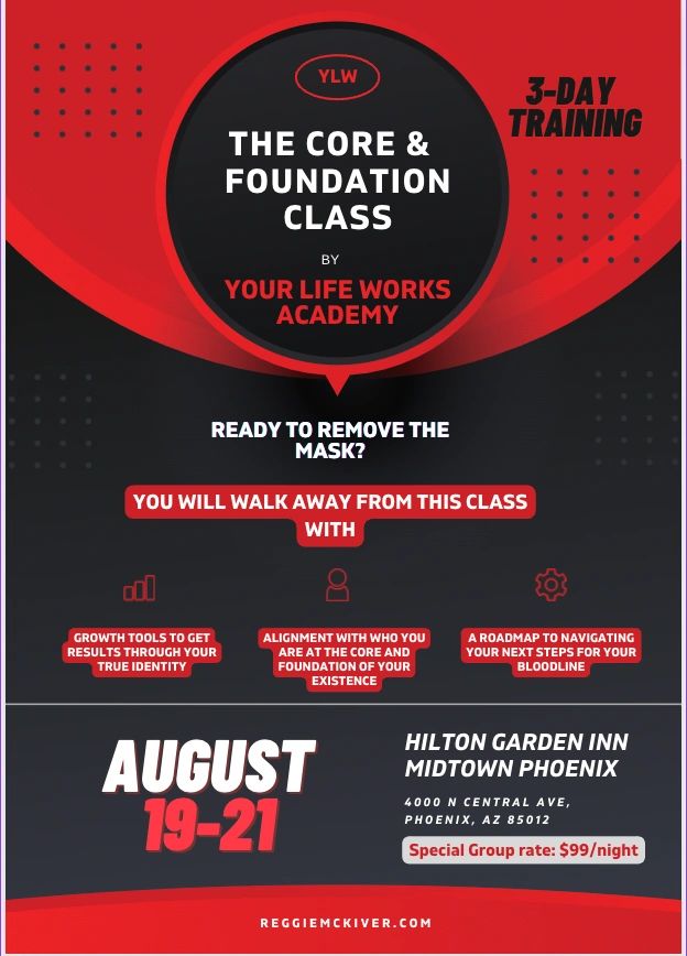 This exclusive 3-day class will help you truly get to the core of beliefs that make up --you, the mask, and your generation. You will walk away from this class with alignment as it sets the stage for the true first stage of your life.